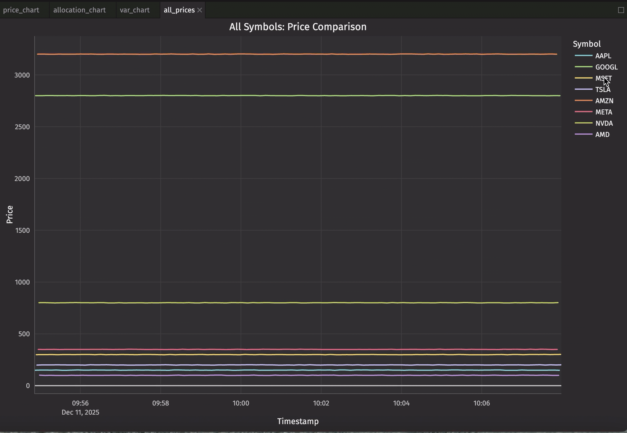 - Real-time market data processing 8 symbols updating every second.