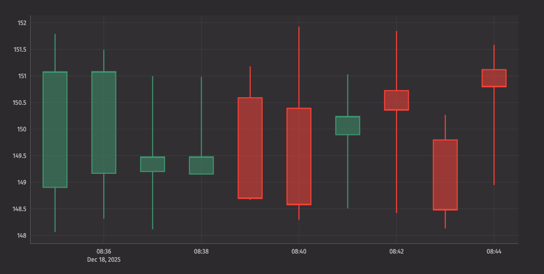 # Market data simulation (updates every second for readable visualization)