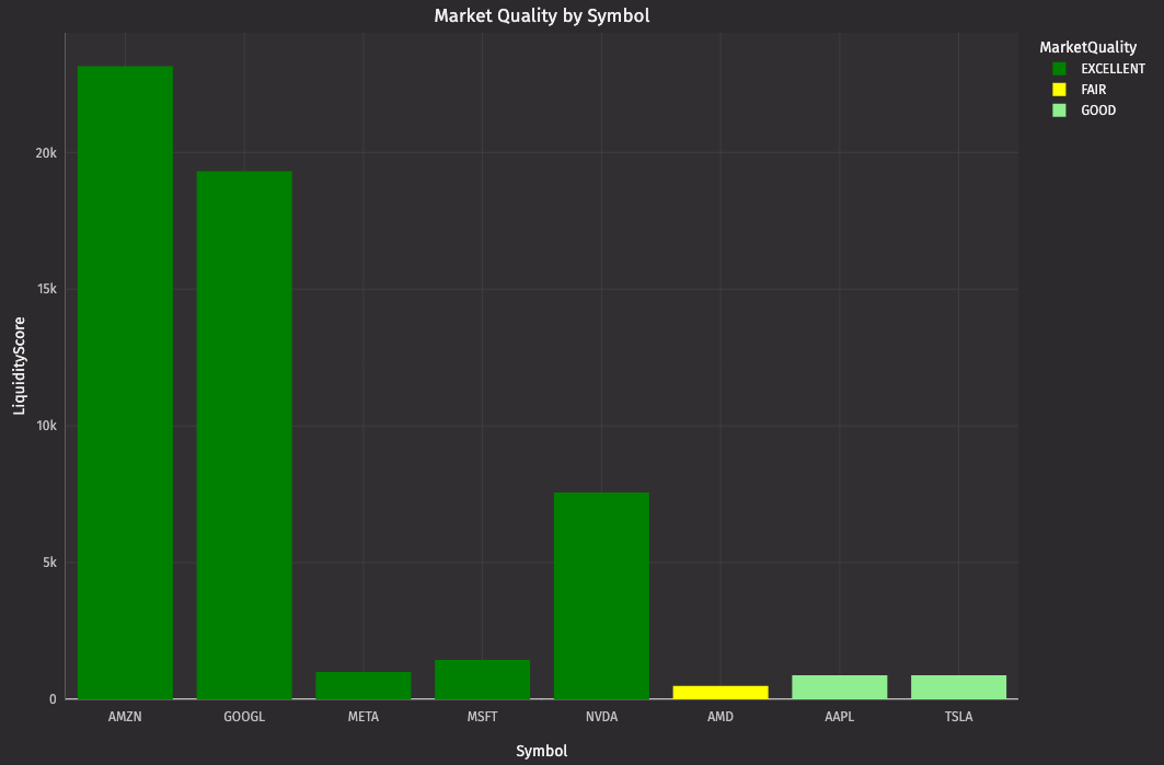 "MarketQuality = LiquidityScore > 1000 ? `EXCELLENT` : LiquidityScore > 500 ? `GOOD` : LiquidityScore > 100 ? `FAIR` : `POOR`"