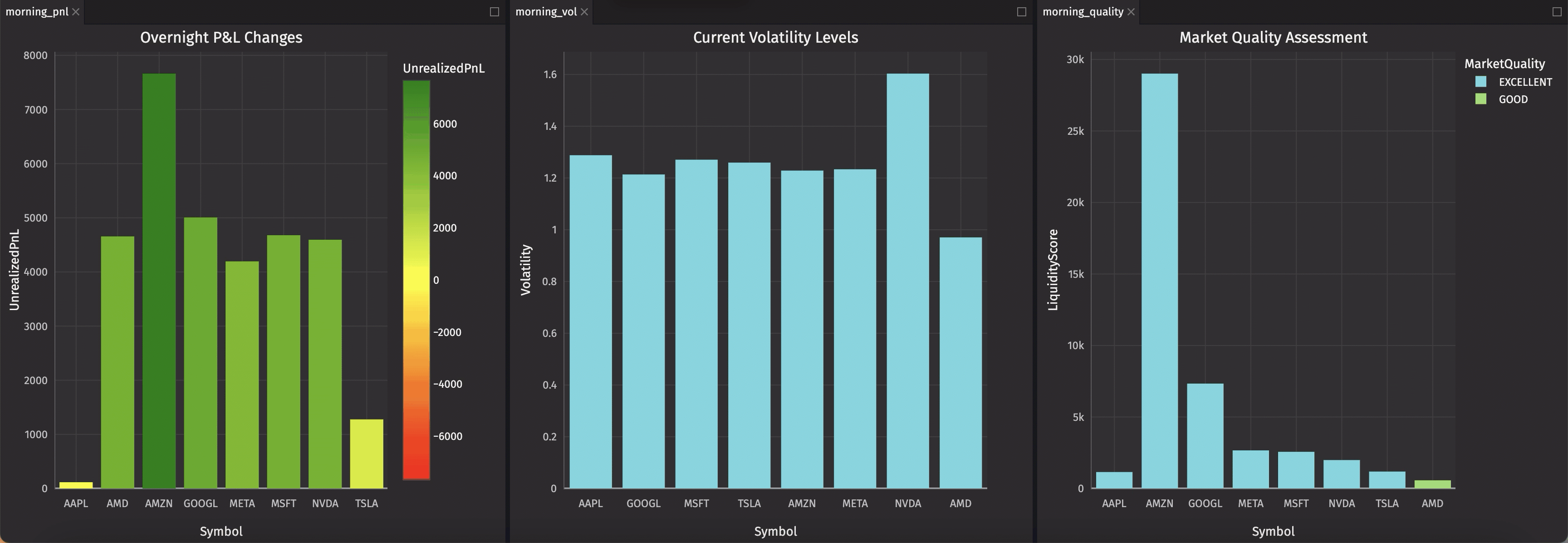 Why UI charts for end-of-day? You're exploring and asking ad-hoc questions, not running a pre-defined dashboard. The UI builder lets you iterate quickly without writing code. Mix and match: use Plotly Express for your live monitoring dashboards, UI charts for post-market exploration.
