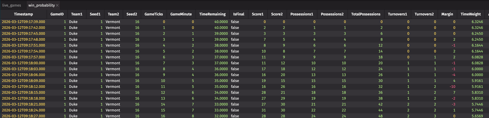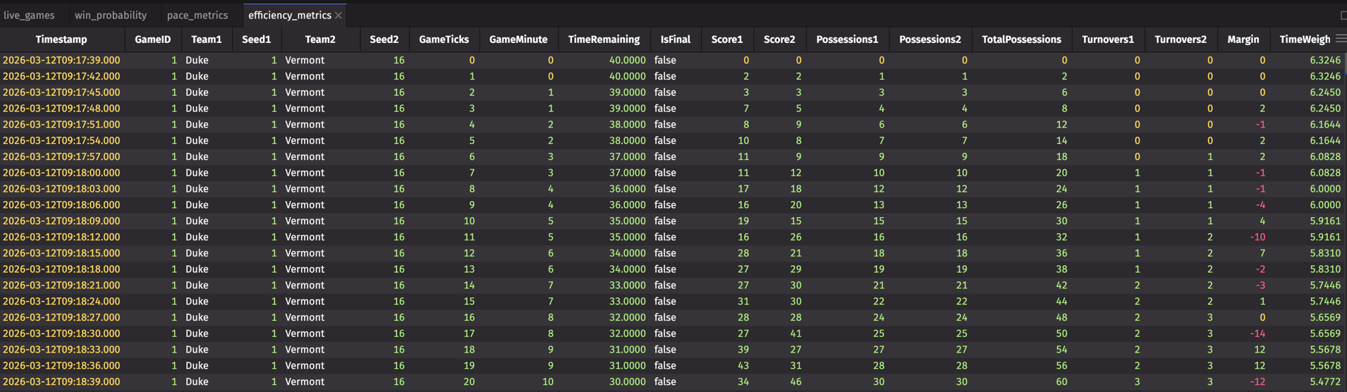 Now your command center doesn't just tell you Vermont is winning; it tells you Vermont is shooting 1.15 PPP against Duke's defense and has a 62% win probability with 8 minutes left.