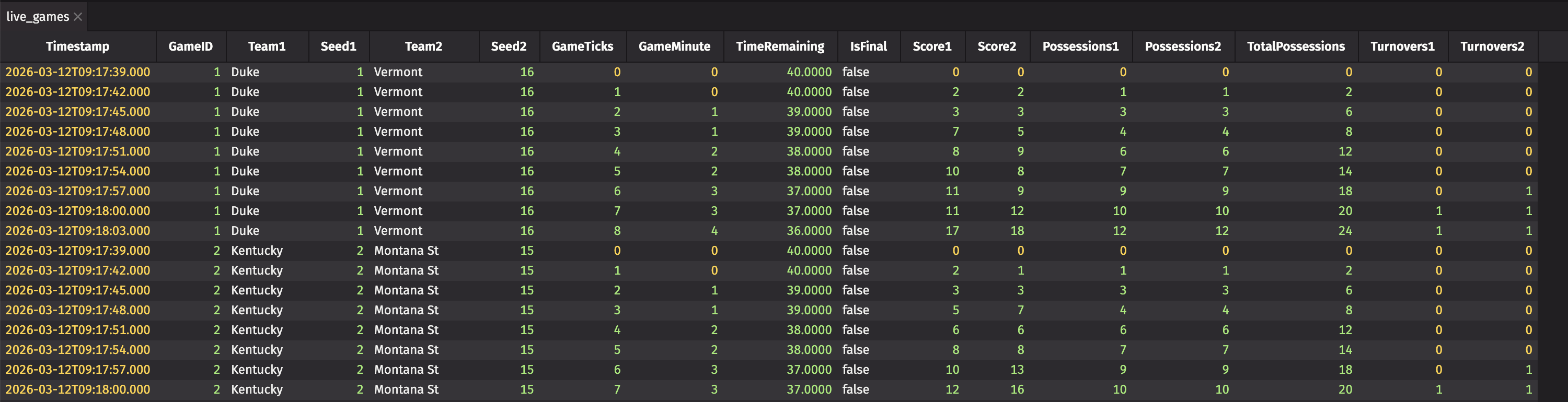 - Part 2: Real-time tracking — monitor scores, detect upsets, track bracket damage.