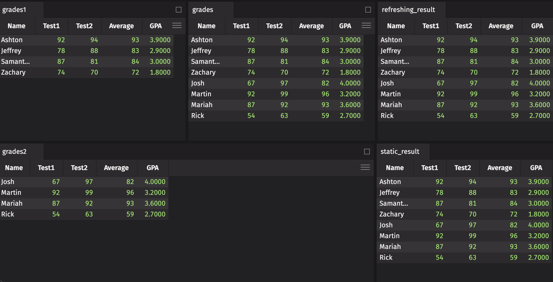 Refreshing tables