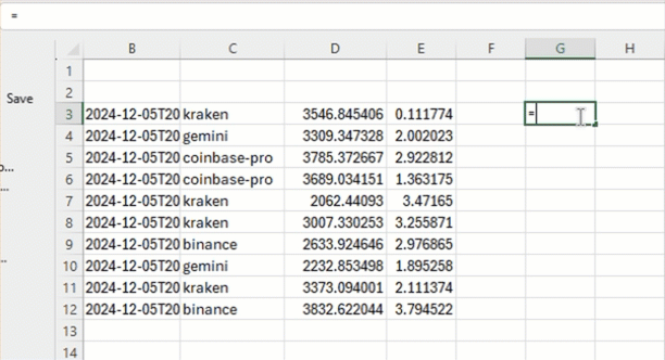 Having a fixed number of formulas in your Excel sheet is a limitation because you may not know in advance how many rows your table has. For example, add a filter string to the DEEPHAVEN_SUBSCRIBE formula above - =DEEPHAVEN_SUBSCRIBE("con1:crypto_table","Exchange = `kraken`", FALSE). This filters the table only to show rows where the Exchange column is "kraken", and the table size changes as it ticks: