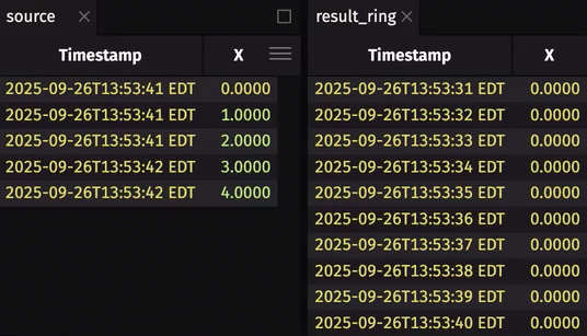 I have a blink table, from which I want to extract the first row of the last N blinks into a separate ring table. How can I do that?