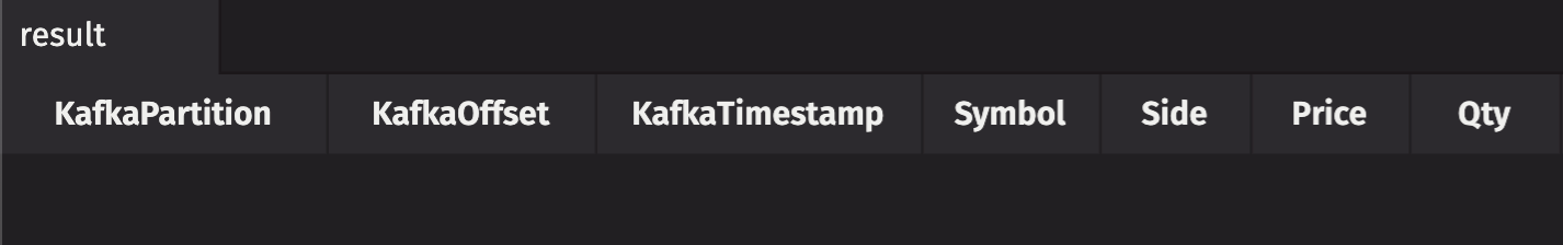 • key_spec is set to IGNORE. The result table will not include a column associated with the Kafka field key.
