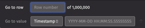 The Go to value feature allows you to go to a specified value in the table, with options determined by a column's data type. For example, when a Timestamp column is selected, the search field accepts DateTime values, while the Instrument column includes options for case-sensitive searches.
