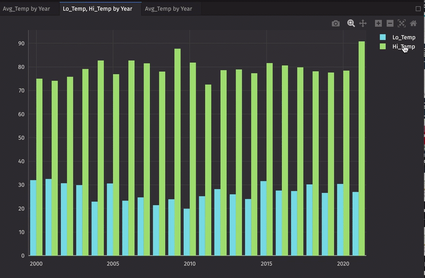 Let's make a multiple series bar chart. This time, we'll select the Lo_Temp column for our first series, then click Add Series and select Hi_Temp: