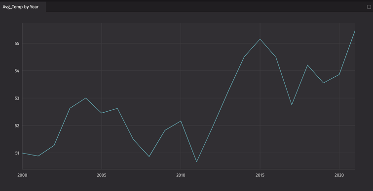 From the hi_lo_by_year table, let's chart the average temperature for each year. Click Create to generate a single series plot.
