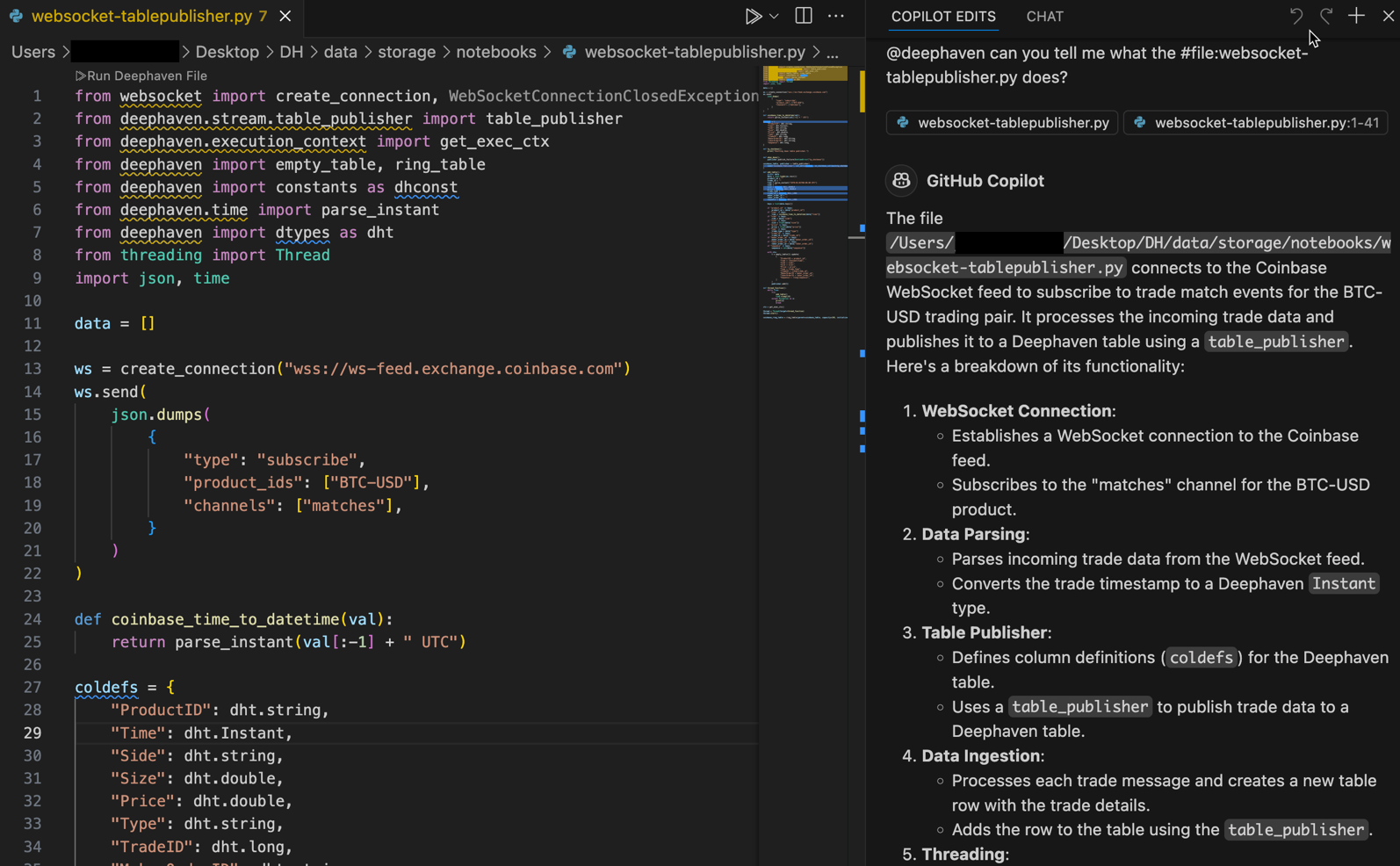 Deephaven's GitHub Copilot extension