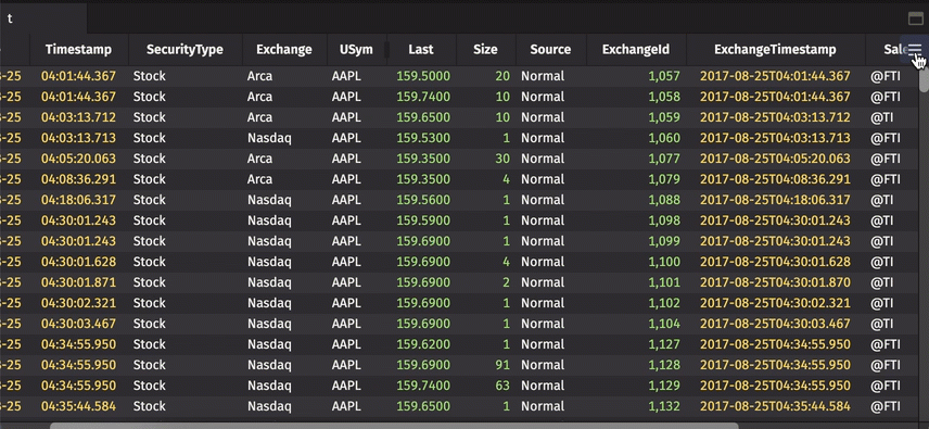This guide shows you how to format tables in Deephaven. This includes reordering and hiding columns, creating custom aggregation columns, applying color formatting to specific cells or rows, and more. All of Deephaven's tools for formatting tables can be accessed by using the column header context menu and the Table Options menu.