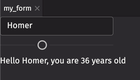 You can also create a form on which the user can click Submit and react to that on a specified callback. In this example, we create a Form that takes a name and age, and when the user clicks Submit, the values entered in the form are sent to the user on the form’s on_submit callback.