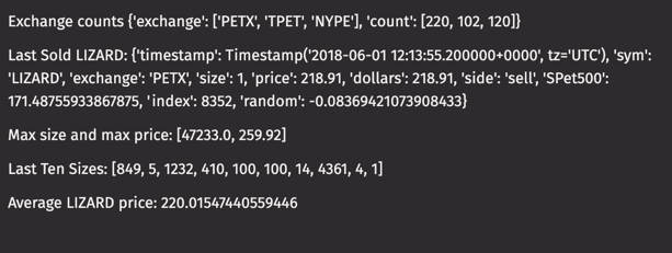 In this example, the hooks are used to display various pieces of information about LIZARD trades.