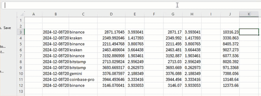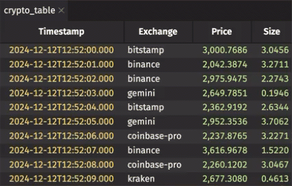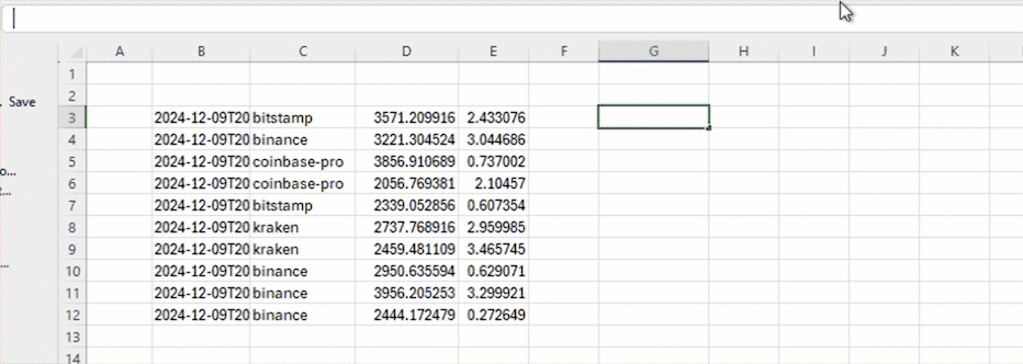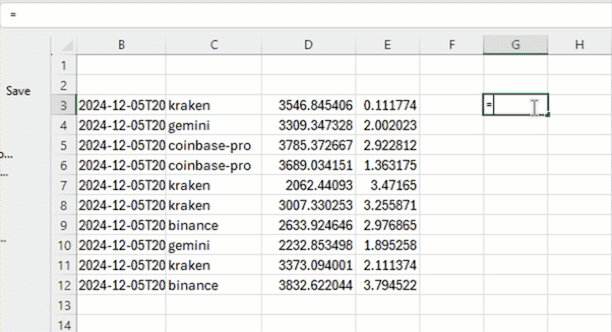 Next, fetch the table with =DEEPHAVEN_SUBSCRIBE("con1+:test_pq/crypto_table",,FALSE):