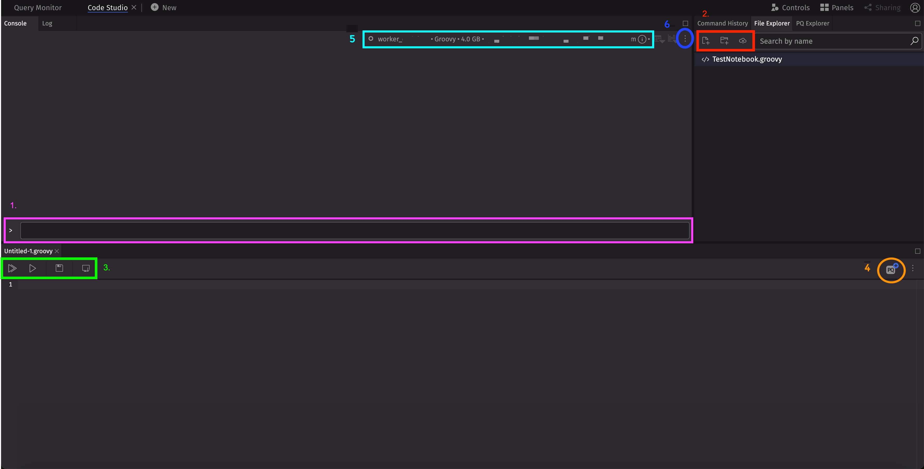 This field allows you to write and execute Deephaven commands.