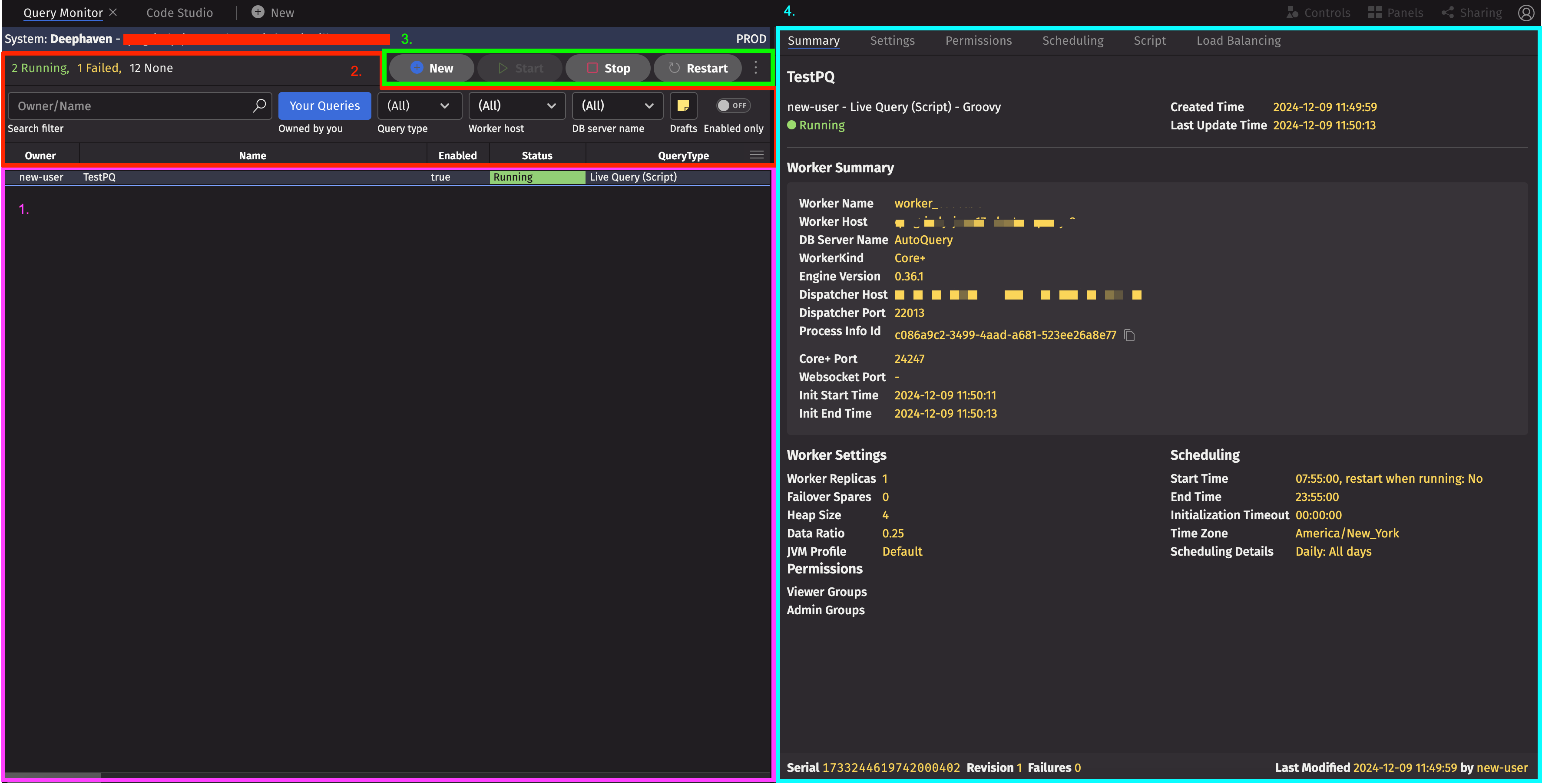 These buttons provide options to create a new PQ or start/stop/restart the selected PQ right from the Query Monitor.