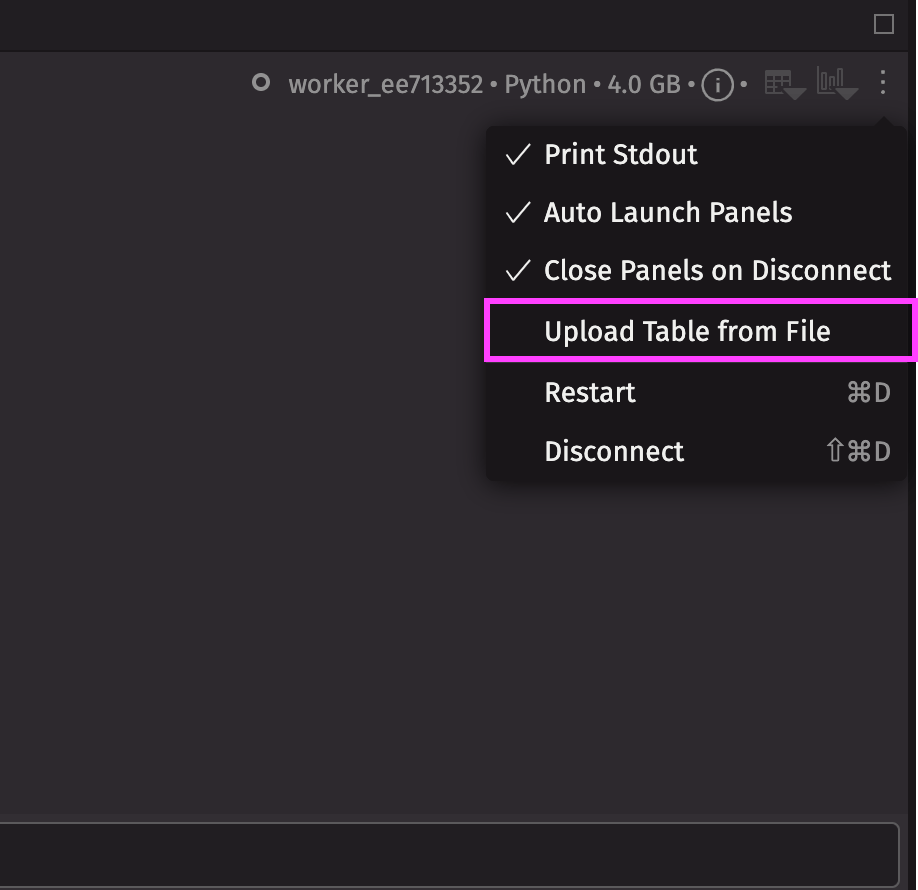Use this menu to restart or disconnect your worker.