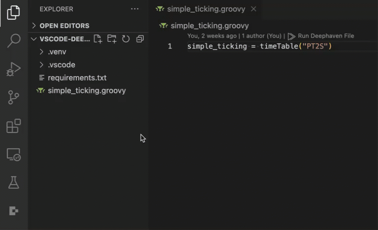 Deephavenview by clicking the Deephaven icon in theactivity bar.
