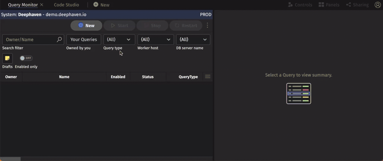 If you open a Query Monitor tab in the Deephaven IDE, you should see an