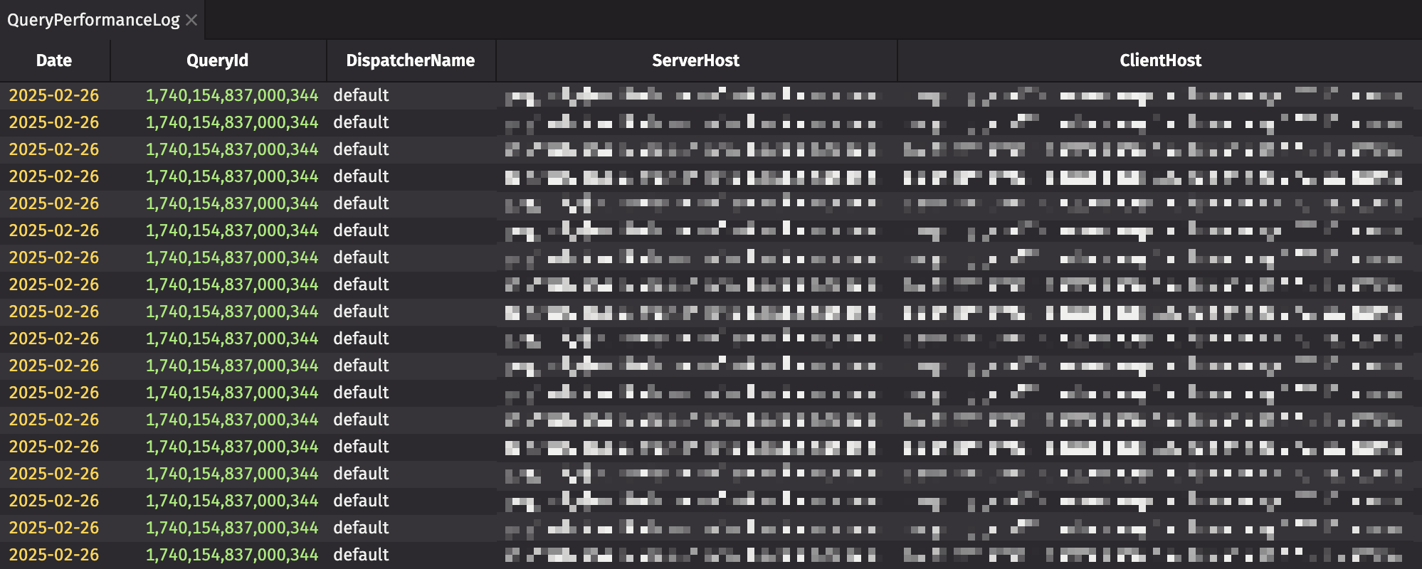 The above example assumes there is a live table named QueryPerformanceLog in the DbInternal namespace, which has a column named Date.