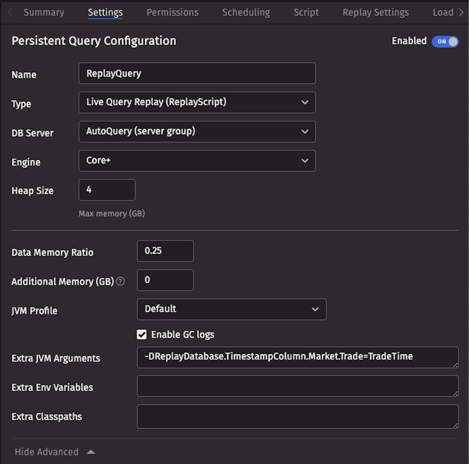 JVM arguments provide advanced configuration options for Replay Queries. These arguments can be added in the Extra JVM Arguments field when creating or editing a Replay Query.