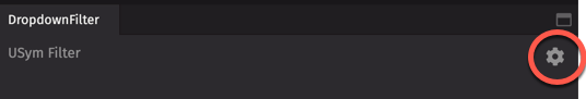 To edit your configuration, click the gear icon at the top right of the Dropdown Filter widget: