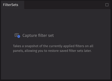 Filter Sets capture the current state of all filters applied across the current dashboard (including plots, tables, etc.) into one "set" that you can then reapply at a later time.
