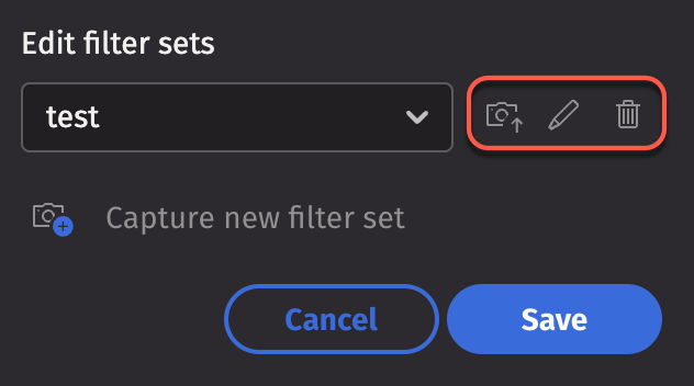 The Filter Sets panel will now show three options: Update, Edit, or Delete: