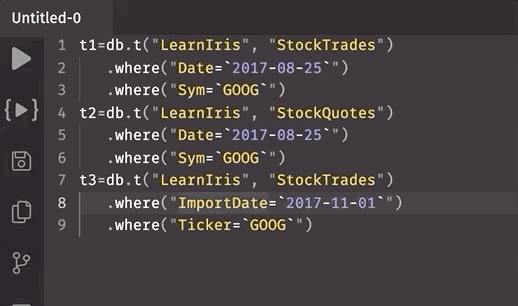 The Notebook allows you to develop query components, stage draft queries, or simply store notes. Think of the Notebook as a sandbox in which queries can be developed and refined, and then easily executed in Deephaven.