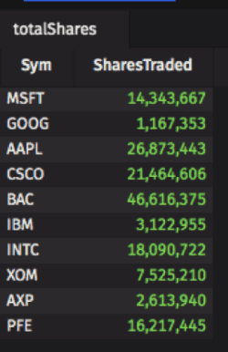 The tab at the top of each panel shows the name of the table or plot it contains. For example, the panel below contains one table called "totalShares".