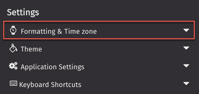 To open the Formatting & Time zone section, select the drop-down from the Settings menu: