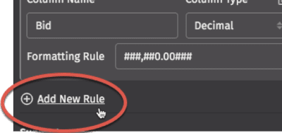 Create new formatting rules by scrolling to the bottom of the section and selecting the Add New Rule button: