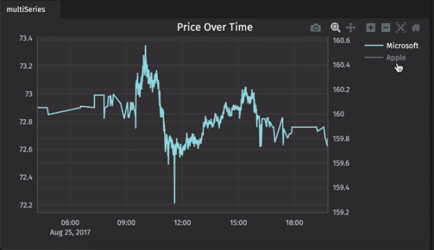 For example, the Apple series has been hidden in the chart below, and the series name has been dimmed in the legend.