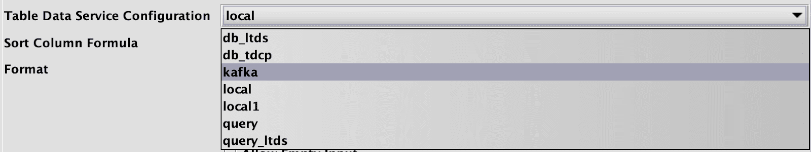 The above example corresponds to the routing entries that include original local (local) and kafka_direct. If desired, tags can be used to restrict which TableDataService entries are shown in the UI.