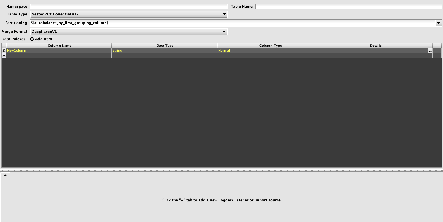 - Partitioning - specifies how the table is partitioned when it is merged to historical partitions. This can be an arbitrary partitioning string, but two common options are provided.