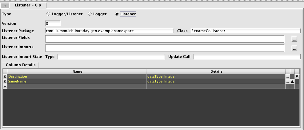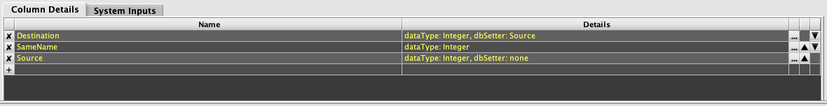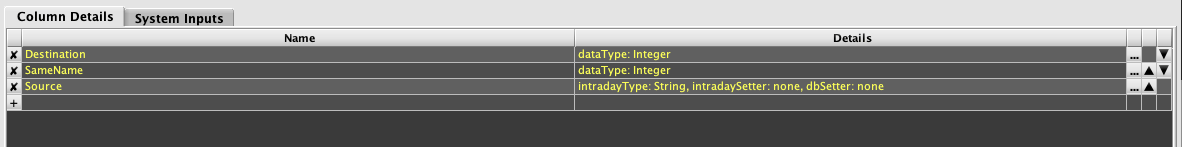 ) can be used to reorder the rows (as can drag-and-drop). However, order of columns is not significant for the Logger, Listener, or ImportSource sections of schema files. - The plus sign button (