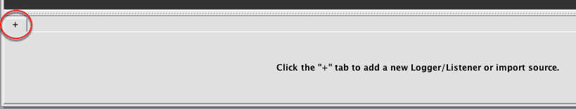 The tabs in the bottom section of the Schema Editor dialog contain information found in the Logger, Listener, Logger/Listener, and ImportSource blocks of the schema XML. If a new schema is discovered from CSV or JDBC, an ImportSource section is automatically added in the lower section of the interface. To manually add one or more of these sections, click the + tab at the left of the tab set in the lower area of the form as shown below.