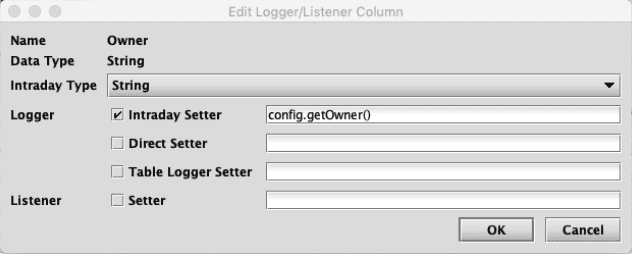 In this case, the check boxes for Direct Setter and Setter are not selected because these attributes are not needed and not specified for the Owner column. It is common in the dialogs for editing these types of details to include many optional attributes whose use is controlled by check boxes.