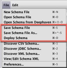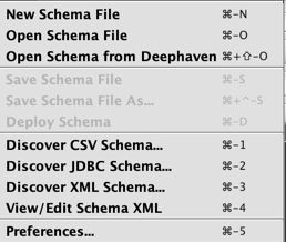 - Open Schema from Deephaven enables users to open and then edit or clone an existing schema that has already been deployed to a Deephaven installation.
