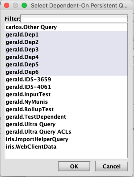 After saving your edits, the new persistent query will be listed in the Query Configuration window.