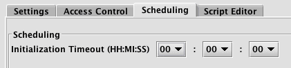 The Settings, Access Control, Scheduling, and Script Editor tabs are discussed below.