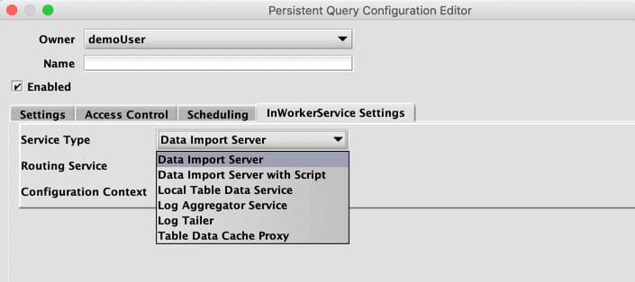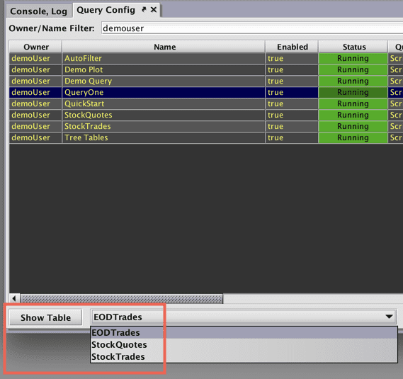 - Name - Query names can be any combination of characters and numbers. However, each query in a given installation of Deephaven must have a unique name.