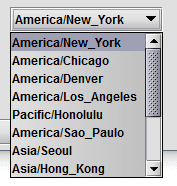 In the example shown below, America/New_York is the default setting and there are other time options from which to choose. However, the time zones presented may vary in other implementations of Deephaven.