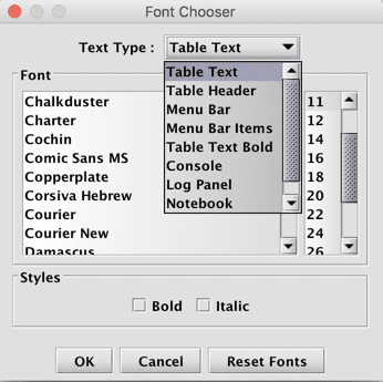 This setting allows you to further customize and personalize the Deephaven interface. You can change the font for table headers or text, the menu bar, or that used in the console or log panels.