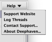 Selecting Support Website will open a new browser session (using your default web browser) and load the web page at https://deephaven.io/help. Options for help on that web page include email, chat and a link to the Deephaven documentation.