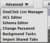Clicking the Advanced button generates the following options in a drop-down menu, which are described below: