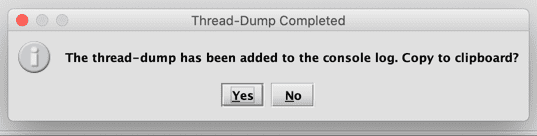 Selecting Log Threads will print a thread-dump (the current state of the system) to the Deephaven console log, and offer the user the option of copying it to the clipboard: