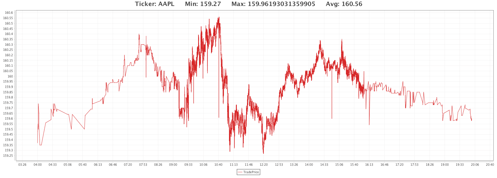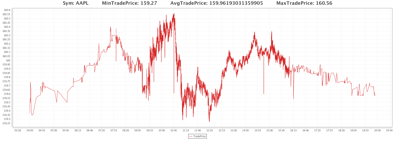OneClick plots paired with an Input Filter on the web will automatically include the applied Input (e.g., "AAPL" for a plot filtered to the AAPL USym); however, the methods and further options discussed below are available in Deephaven Classic.