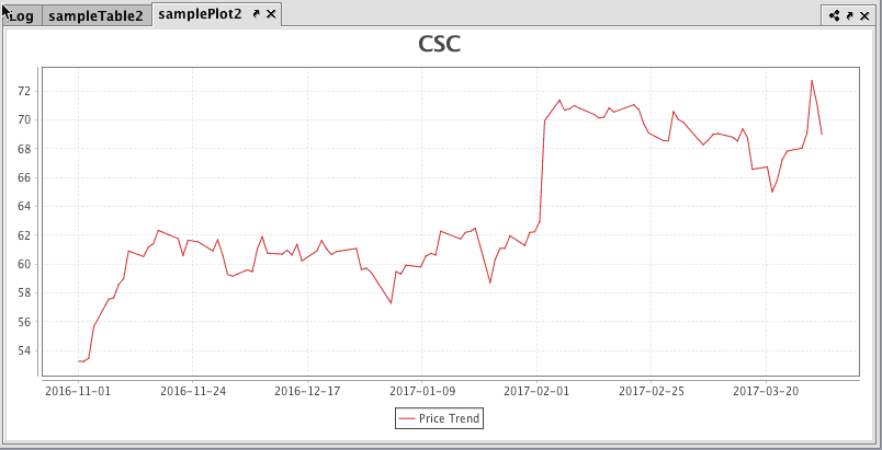 As shown above, the source table was filtered to show only CSC as the Ticker, so the chart title was dynamically created to match that value (CSC). If the source table was subsequently filtered to show only MSFT as the Ticker value, the chart title would update to show MSFT.