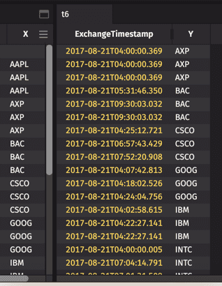 A column name followed by an underscore represents a column as an array of all values within the column. For example, Sym_ creates an array of all the tables's Symbols: